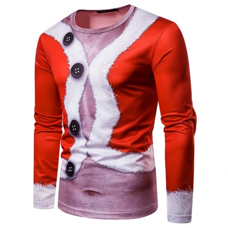 New 3D Personality Printing Fashion Men's Christmas Button Pattern Long-Sleeved T-Shirt