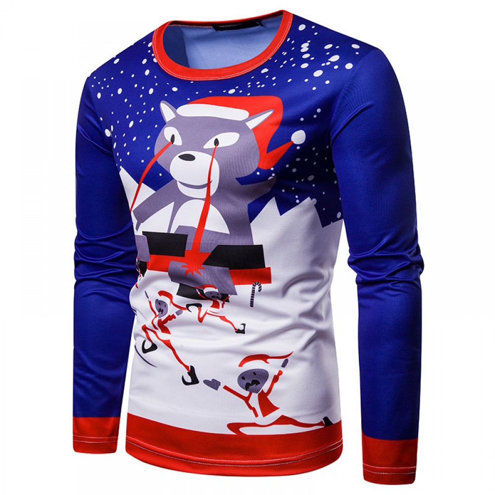 New 3D Personality Printing Fashion Men's Christmas Christmas Cat Dress Up Pattern Long-Sleeved T-Shirt