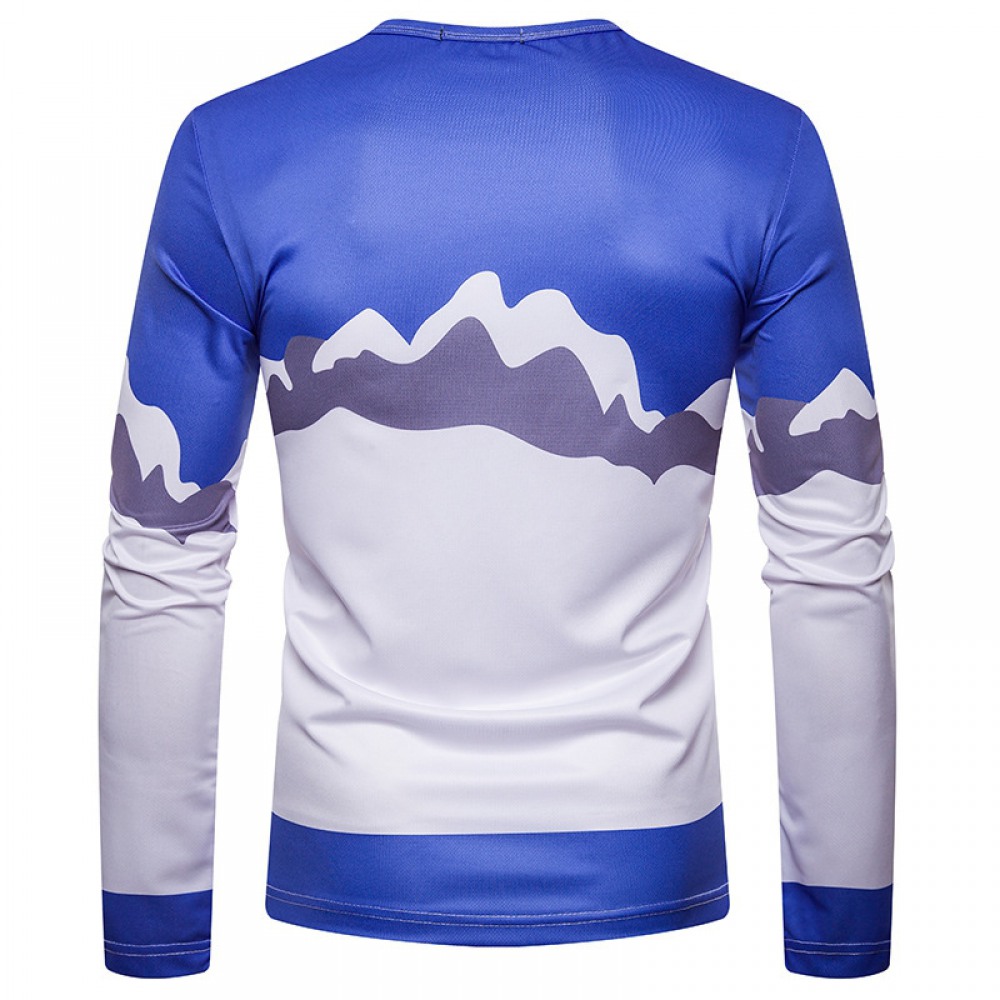 Men's Large Size 3D Blue Pattern Printing High Neck Long Sleeve T-Shirt Bottoming Shirt