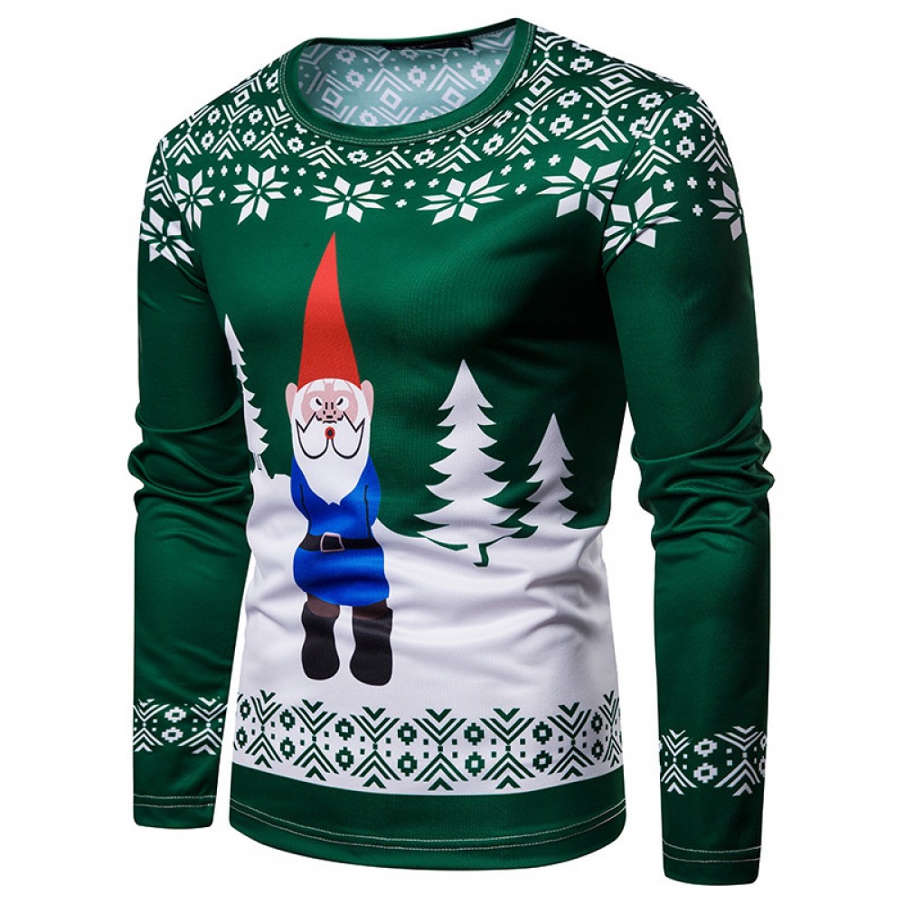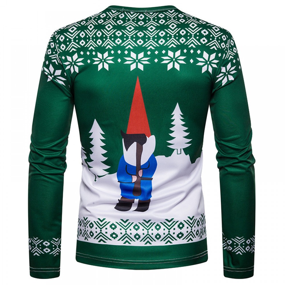 New 3D Personality Printing Fashion Men's Christmas Santa Pattern Long-Sleeved T-Shirt