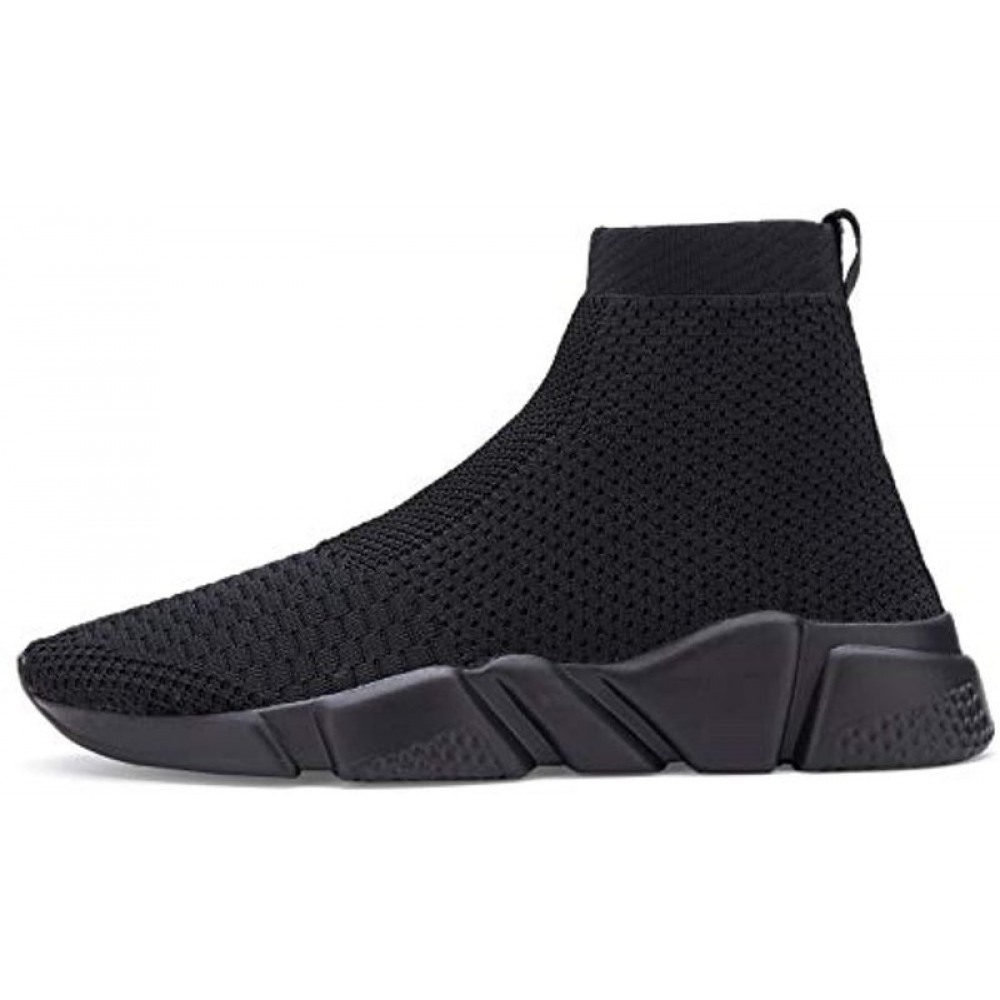 Womens Walking Shoes Mens Slip-On Sneakers Breathable Lightweight Athletic Running Shoes High Top All Black